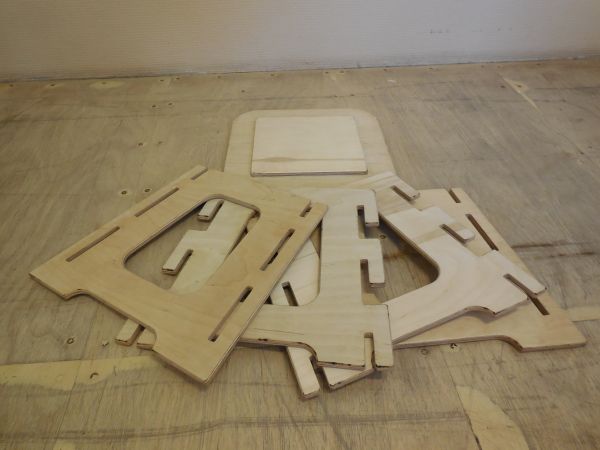 الخطوة 2 - الاستغناء عن الأجزاء. لصنع كرسي بيديك ، تحتاج إلى إعداد جميع مكوناته. يمكن قطعها من الخشب الرقائقي باستخدام بانوراما كهربائية.يتم قطع التفاصيل بوضوح على طول الخطوط المميزة.