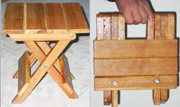 بعد العمل ، والتحقق من المنتج لتحقيق الاستقرار. يمكنك وضع الأثاث على الشرفة أو المطبخ الكبير. من المريح أخذ البراز معك في رحلة إلى النزهة أو إلى البلاد.