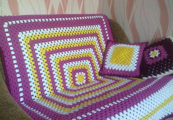 نحن نقدم لكروشيه مربع الجدة الكروشيه. لذلك ، قم بإعداد الخطاف رقم 4 والغزل. يجدر بنا أن نقترب من اختيار الغزل بطريقة مسؤولة ، لأن جودة وحالة السجادة تعتمدان عليه. النظر في الرأي الأكثر شعبية ، إيجابياتهم وسلبياتهم ، واختيار واحد مناسب.