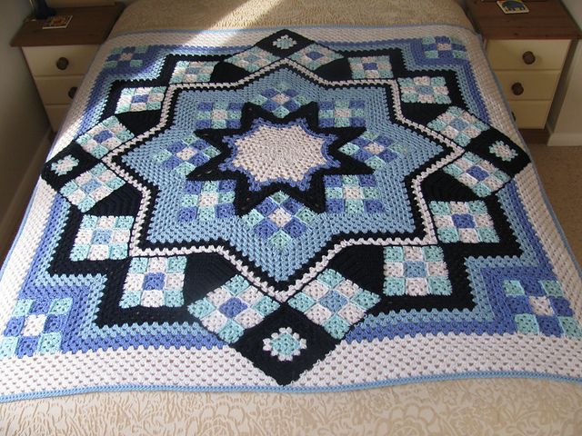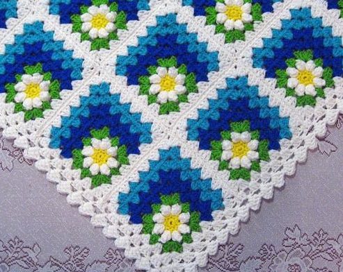 بالنسبة لساحة الجدة ، يمكن العثور على المخطط في كل من تصميم الكروشيه والتحدث. في كلتا الحالتين ، يمكنك إنشاء قماش مخرم وكثيف - كل هذا يتوقف على رغباتك الخاصة.