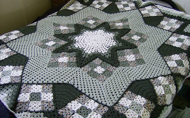 تستند التقنية الموضحة إلى إصدار الترقيع المذكور أعلاه. الفرق الوحيد هو أن العناصر الموجودة في مربع الجدة محبوكة ، ويستند خليط على الخياطة. يظل الجوهر كما هو: تحتاج إلى إنشاء عدة عناصر ، ثم ربطها معًا. وبالتالي ، فإنه تبين بطانية المربعات. لماذا هذه التقنية حصلت على هذا الاسم؟ هذا اسم العامية. كثير من الناس يرتبطون بالحياكة مع الجدات ، لأننا معتادون على ذلك ، أن الجدات هي التي تشارك في هذا العمل. بعد كل شيء ، أحب العديد من أسلافنا حقا متماسكة. يمكن اعتبار مربع الجدة كتقنية خليط مصنوعة فقط من عناصر محبوكة.