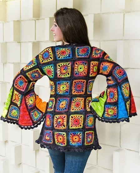 في الوقت الحالي ، نمط الملابس الشائع جدًا هو بوهو. إنه هو المستهلك الرئيسي لهذه التقنية ، سواء في شكل الخياطة أو في شكل الحياكة. إذا كنت ترغب في إنشاء تنورة أو سترة أو قميص أو لباس أنيق ، فهذه الطريقة تناسبك تمامًا. تجدر الإشارة إلى أن مربع الجدة مصنوع من خيوط مختلفة الألوان. وبالتالي ، فإنه يتحول إلى نموذج ساطع ومثير للاهتمام يؤكد تمامًا على أسلوب بوهو.