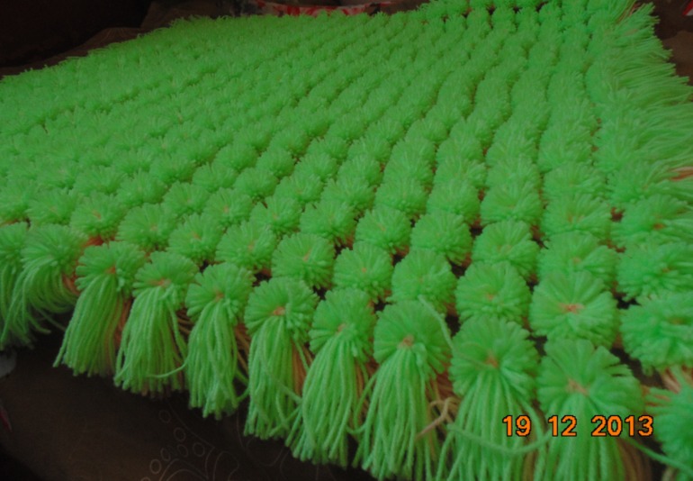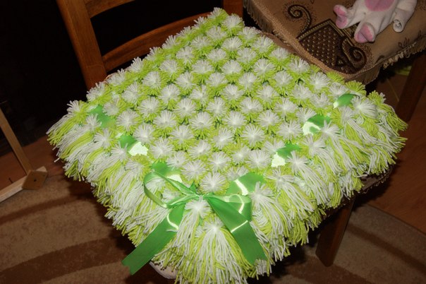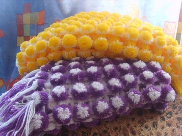 نحن نفعل الشيء نفسه مع خيوط من الألوان الأخرى ونشكل العديد من الكريات المرحة كما هو مطلوب من قبل حجم القاعدة.