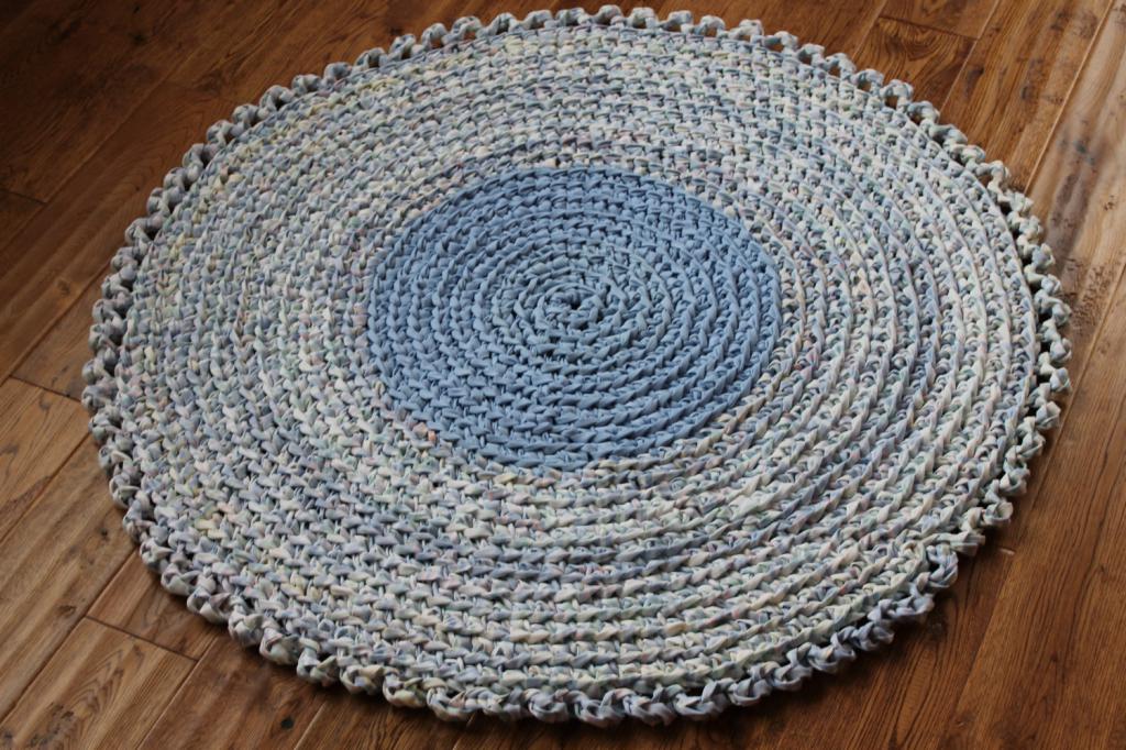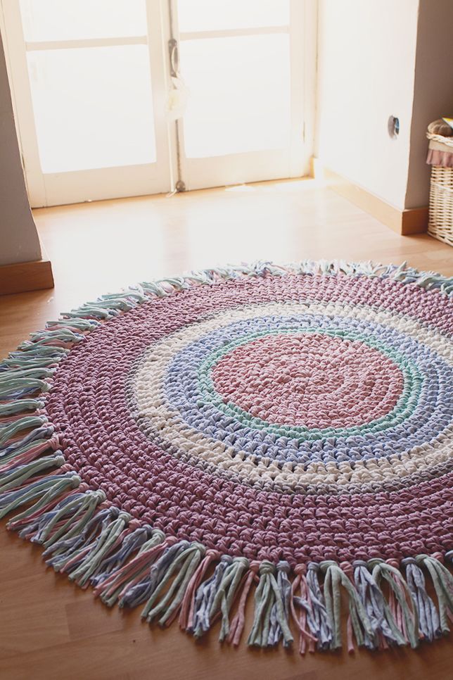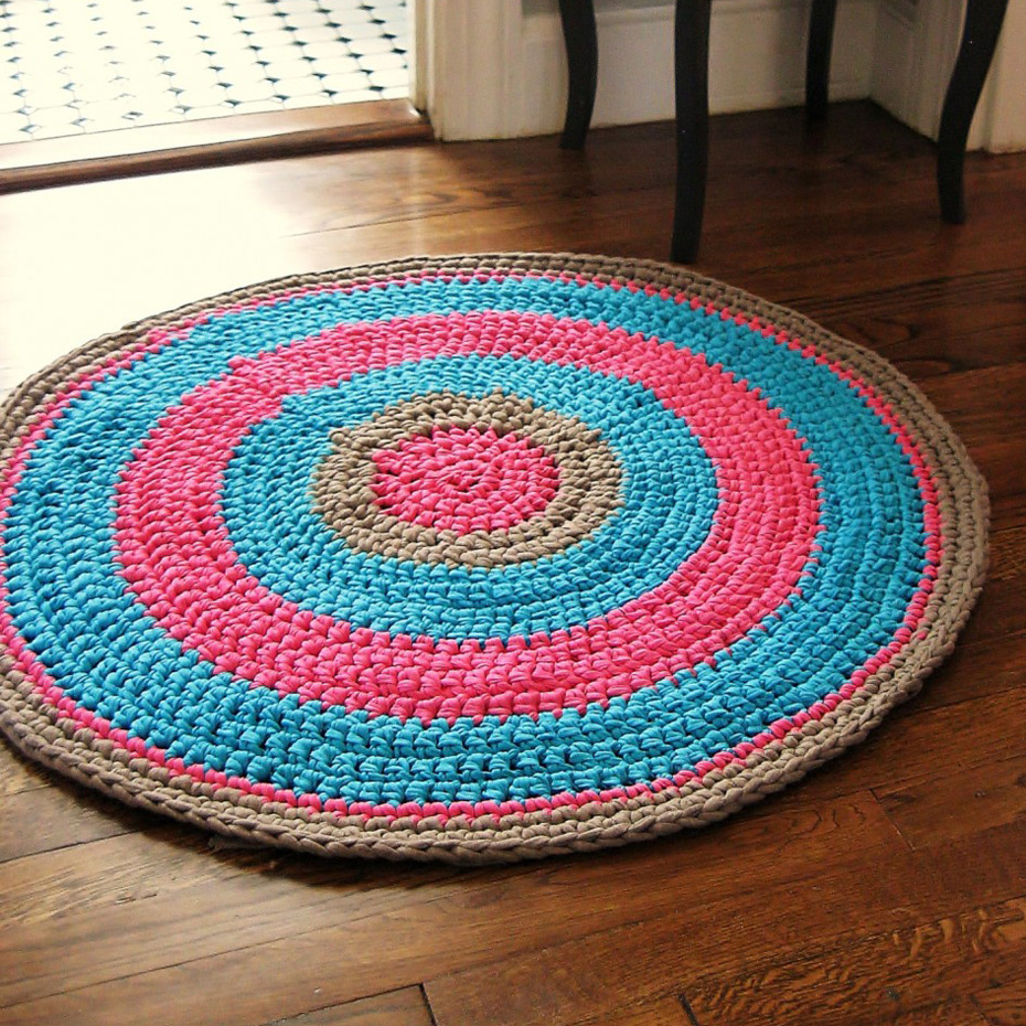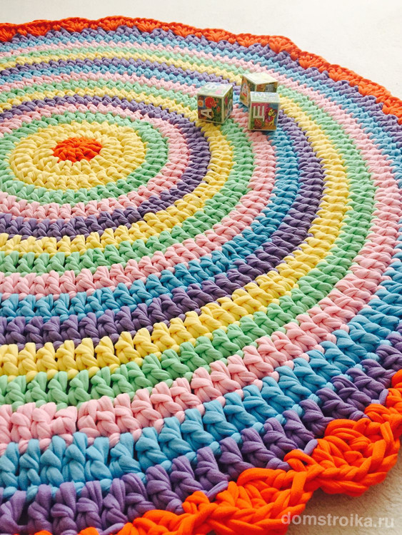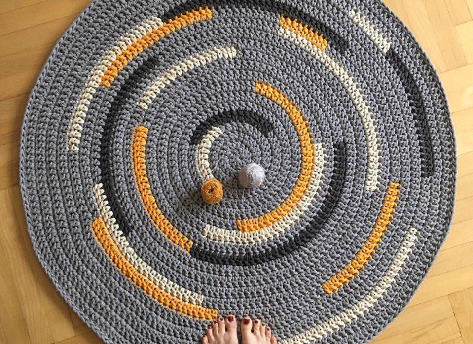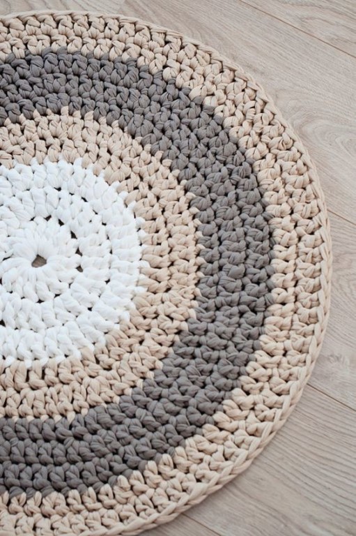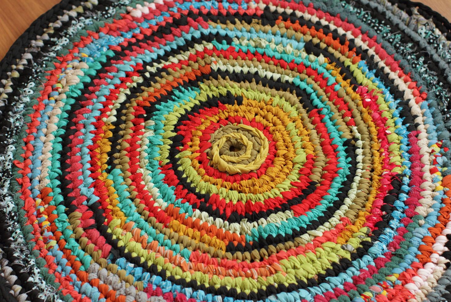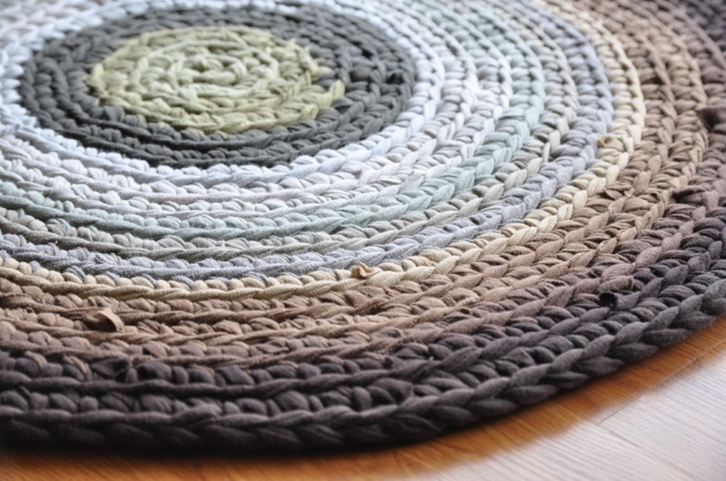 خيار جيد لتنويع المناطق الداخلية من الشقة ، لجلب عناصر من العصور القديمة - لأداء سجادة الكروشيه ، والتي يسهل صنعها من الأشياء القديمة.