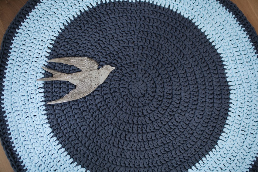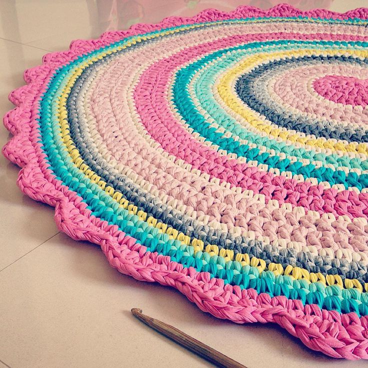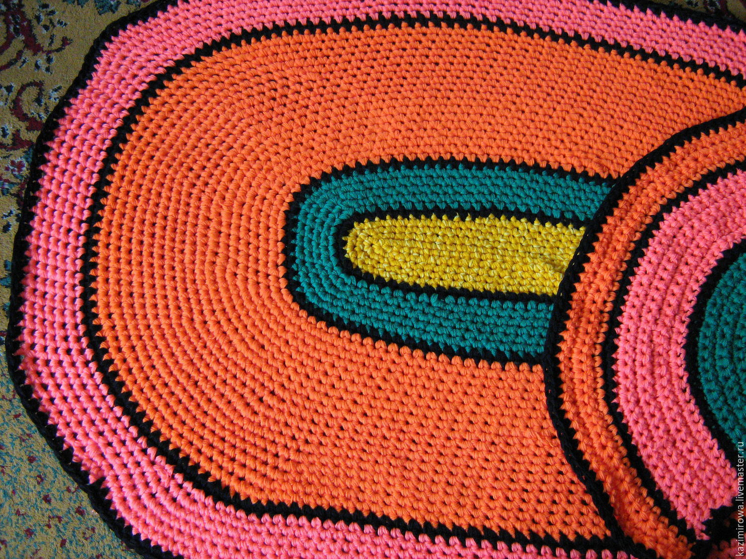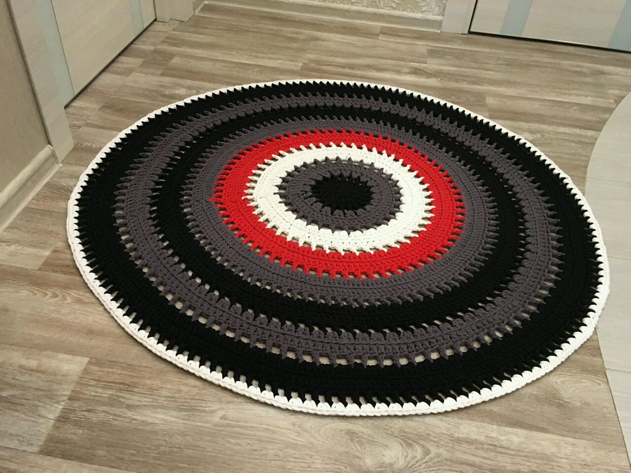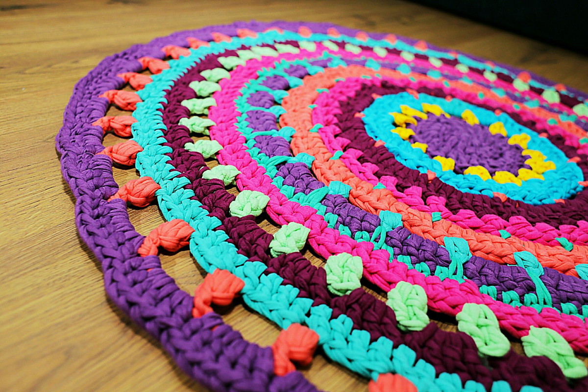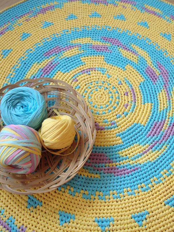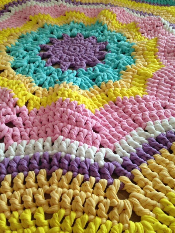 خيار جيد لتنويع المناطق الداخلية من الشقة ، لجلب عناصر من العصور القديمة - لأداء سجادة الكروشيه ، والتي يسهل صنعها من الأشياء القديمة.