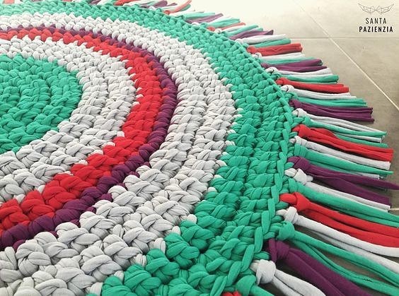 كيفية الكروشيه سجادة وبدون ربط من القمصان القديمة خطوة بخطوة
