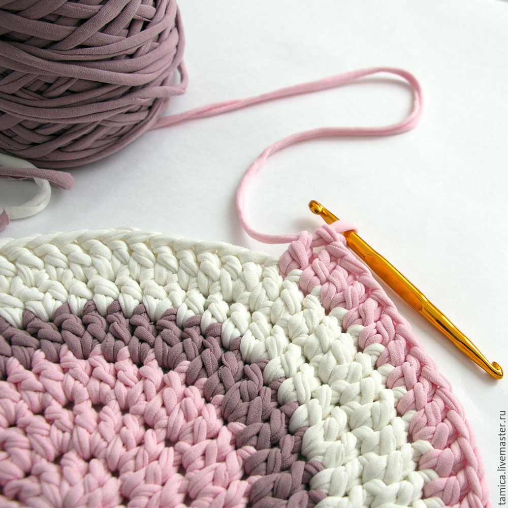 بادئ ذي بدء ، يجب أن تحاول عمل حصائر دائرية بسيطة تبدأ من الوسط ، مع زيادة تدريجية في القطر مع صفوف vyvyazyvaniya.