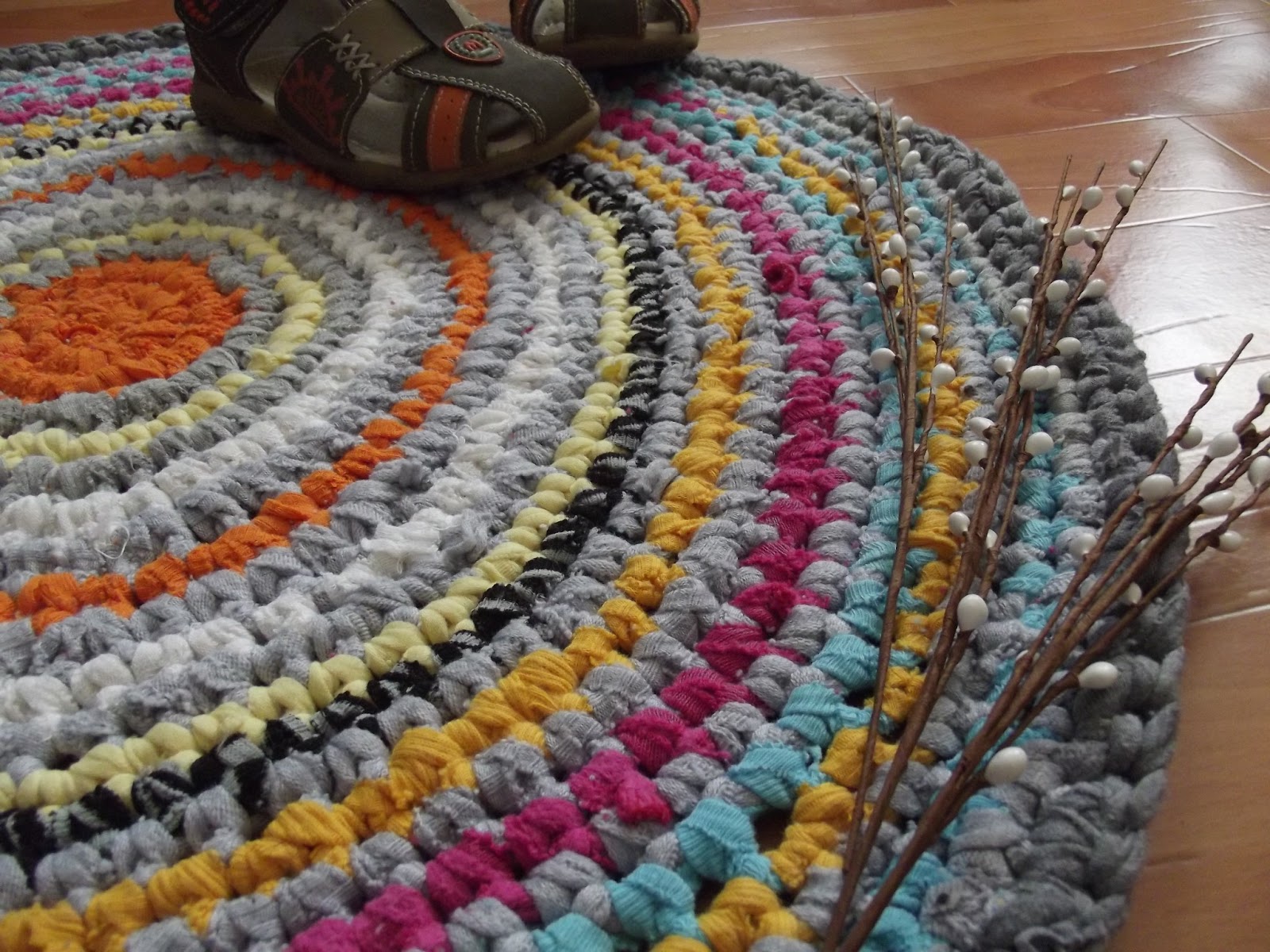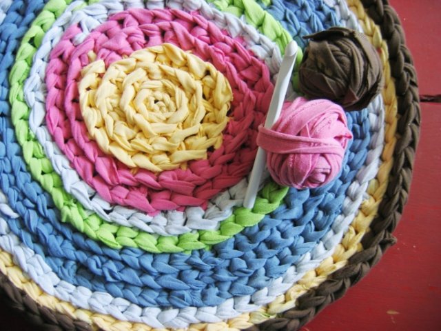 يمكن صنع السجاد من أي أشياء قديمة أو قديمة. بالنسبة له ، يتلاءم مع القمصان الملونة ، والسترات الصوفية القديمة ، والسترات الصوفية الدافئة ، والجينز الذي أصبح صغيراً ، والجوارب الضيقة وحتى الأكياس البلاستيكية.