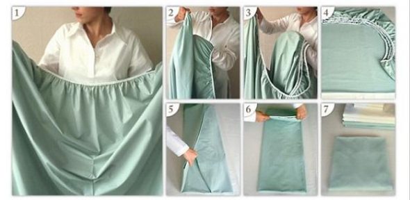 على الرغم من سهولة الاستخدام ، فإن تخزين الأشياء ، ربما ، يسبب صعوبات. يتساءل العديد من الفتيات والرجال عن كيفية طي ورقة على شريط مرن للتخزين. لا أحد يريد أن تسقط كومة البياضات المنكوبة من الرفوف ، كما أن توفير المساحة مهم بما فيه الكفاية في الشقة.