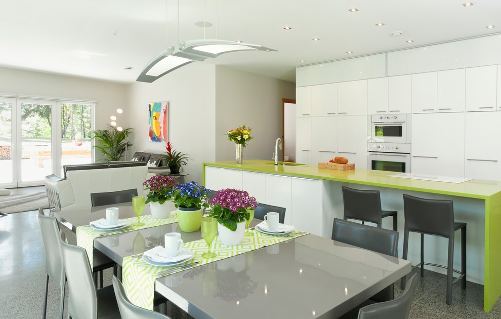 من بين الخيارات الحديثة ، من السهل اختيار مفرش أنيق وعملي للمطبخ.