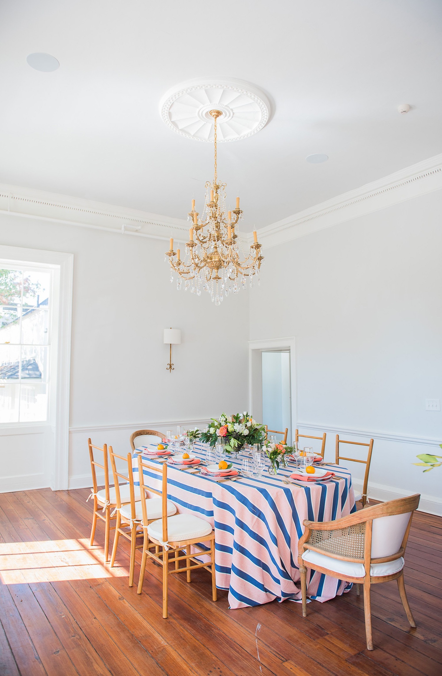 مفرش المائدة بألوان الباستيل على طاولة مستديرة هو قرار جميل للغاية.