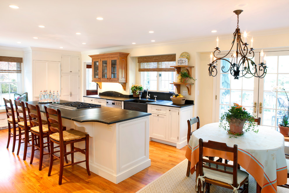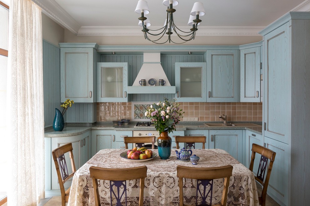 بالنسبة للمطبخ ذي الطراز الكلاسيكي ، من الأفضل اختيار مفرش المائدة من الكتان أو القطن.