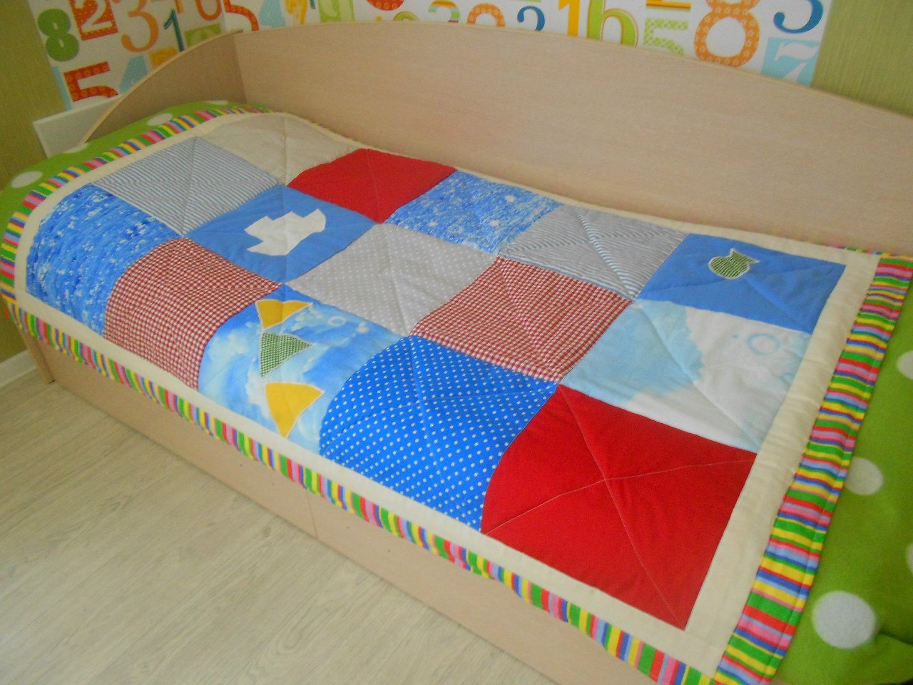 لنفترض أن السرير قد تم اختياره بشكل صحيح ، مع مراعاة حجم الطفل. الآن سوف نبني على معالم السرير. لذا ، فإن البطانية القياسية تساوي طول السرير ، ويتجاوز العرض 7-10 سم. لن يسمح هذا الخيار للمنتج بالانزلاق من السرير ، في حين سيكون كافيًا للاستخدام المريح.