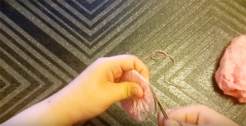 انتبه! يمكنك صنع شدات الورد من خيوط التريكو القديم ، وتقطيعها إلى شرائح رفيعة.