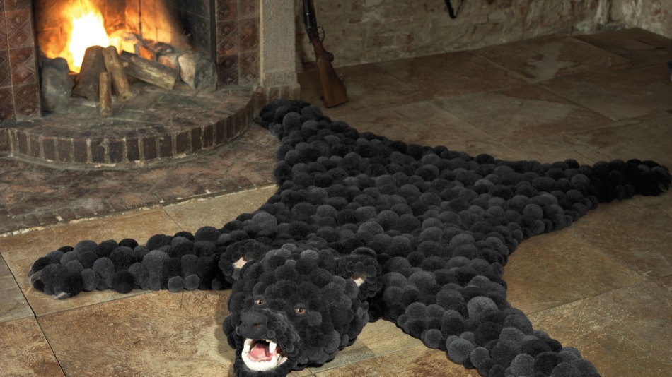 لمنزل ريفي هناك أفكار أكثر إثارة للاهتمام. على وجه الخصوص ، يمكنك بسهولة جعل نمط جلد الدب. ثم قم بخياطة الكريات الداكنة على القمة وشكل رأس دب منها.