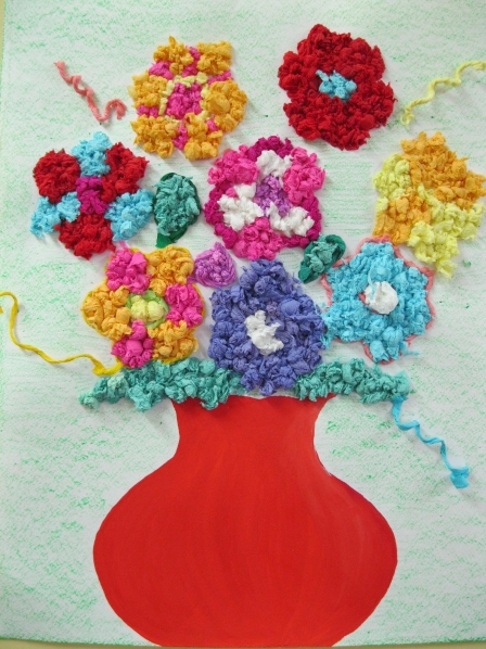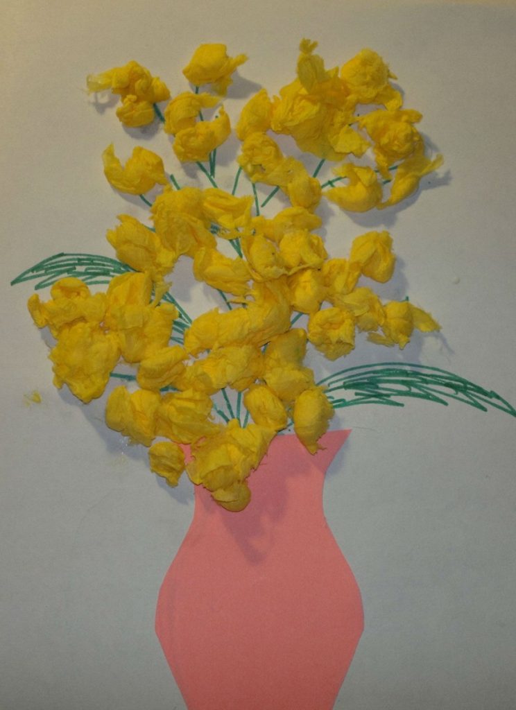 يعجب الأطفال حقًا بهذه الزهور الزاهية ، وهم سعداء ببدء العمل.