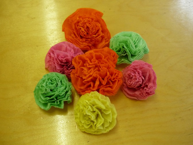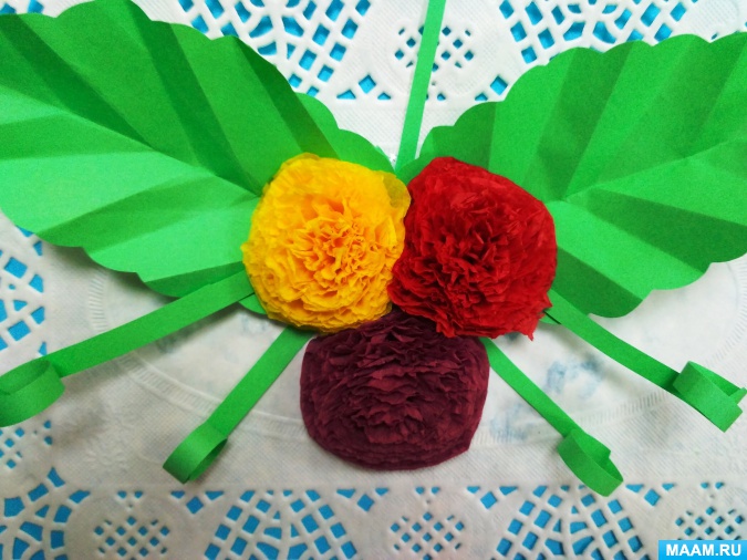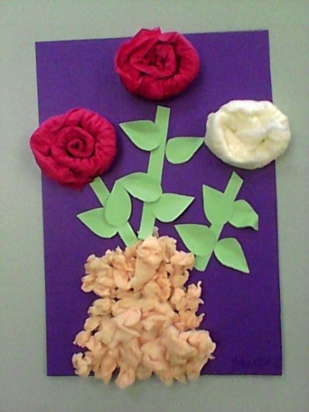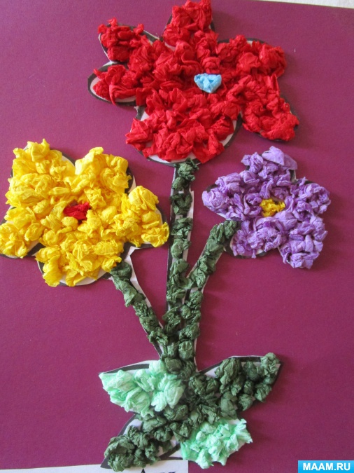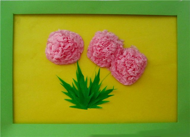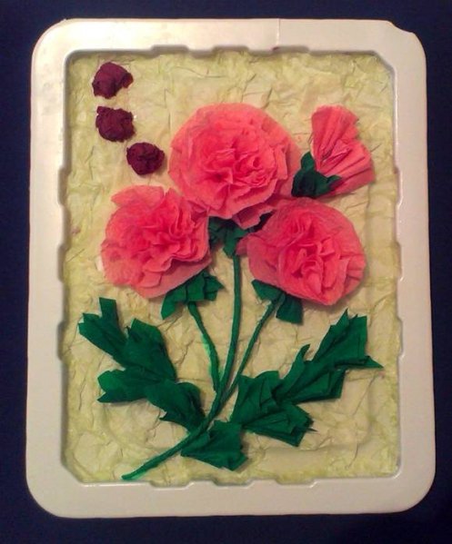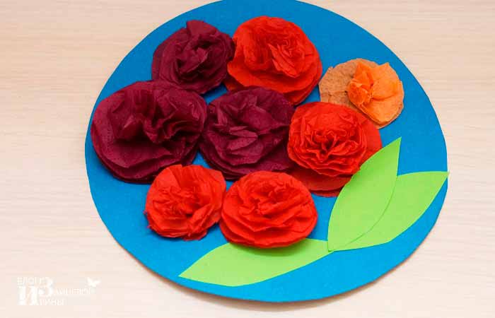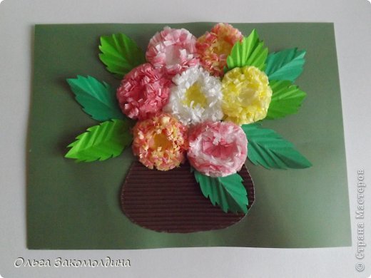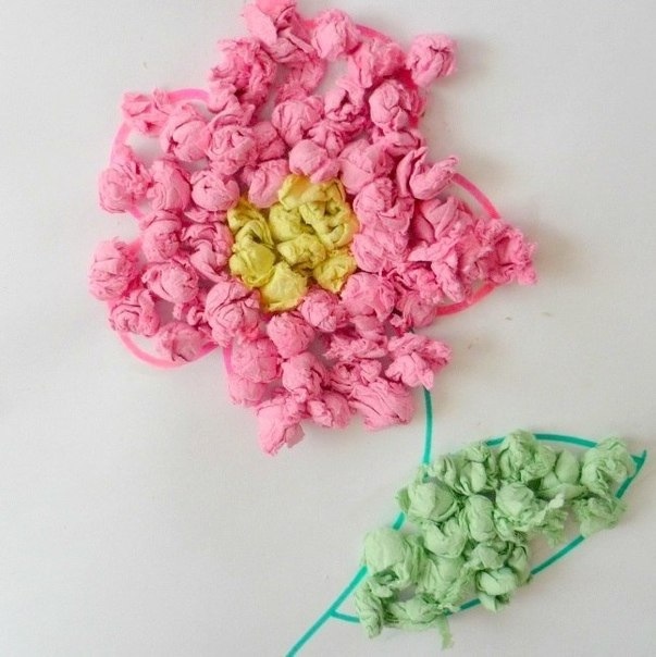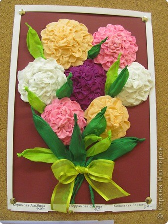 لهذا النوع من الإبرة ، ستحتاج إلى مناديل ورقية عادية بألوان مختلفة. إنهم يلفون الأنابيب ، ويقطعون بتلات ، أو كرات "العفن".