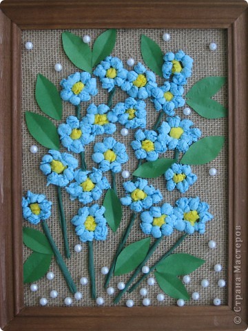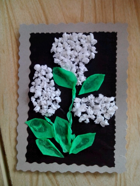 - يتم تطبيق كتلة لاصقة على مساحات صغيرة من سطح الورق المقوى ، ويتم وضع كرات منديل أو سوط على الفور ، وفقًا للزخرفة ؛
