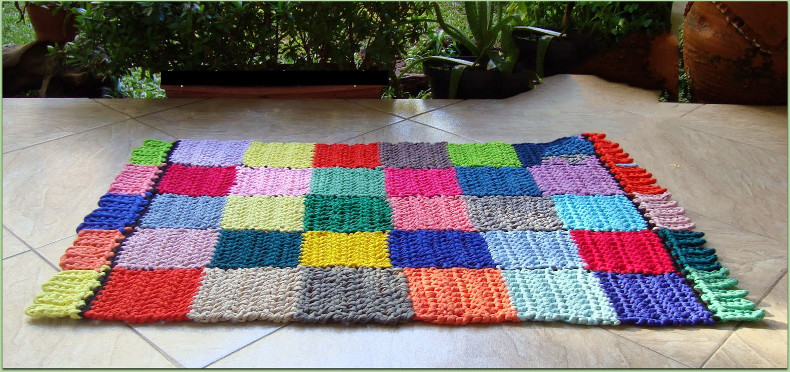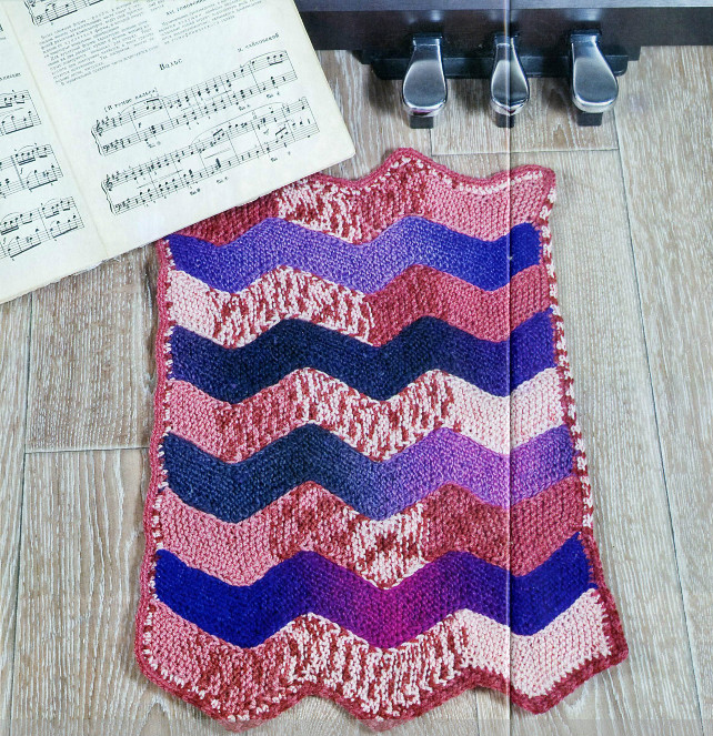 كل ما يلزم هو الغزل والإبر والحياكة ونمط من أجل حياكة سجادة صغيرة في غرفة المعيشة.
