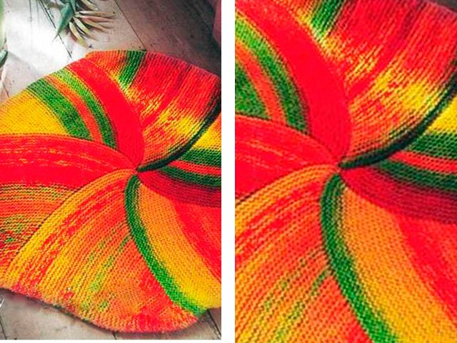 البساط محبوك في أقسام منفصلة. وفقًا لهذا المبدأ ، يمكنك ربط أي شكل دائري - شال أو بونتشو أو غطاء سرير أو مفرش طاولة.