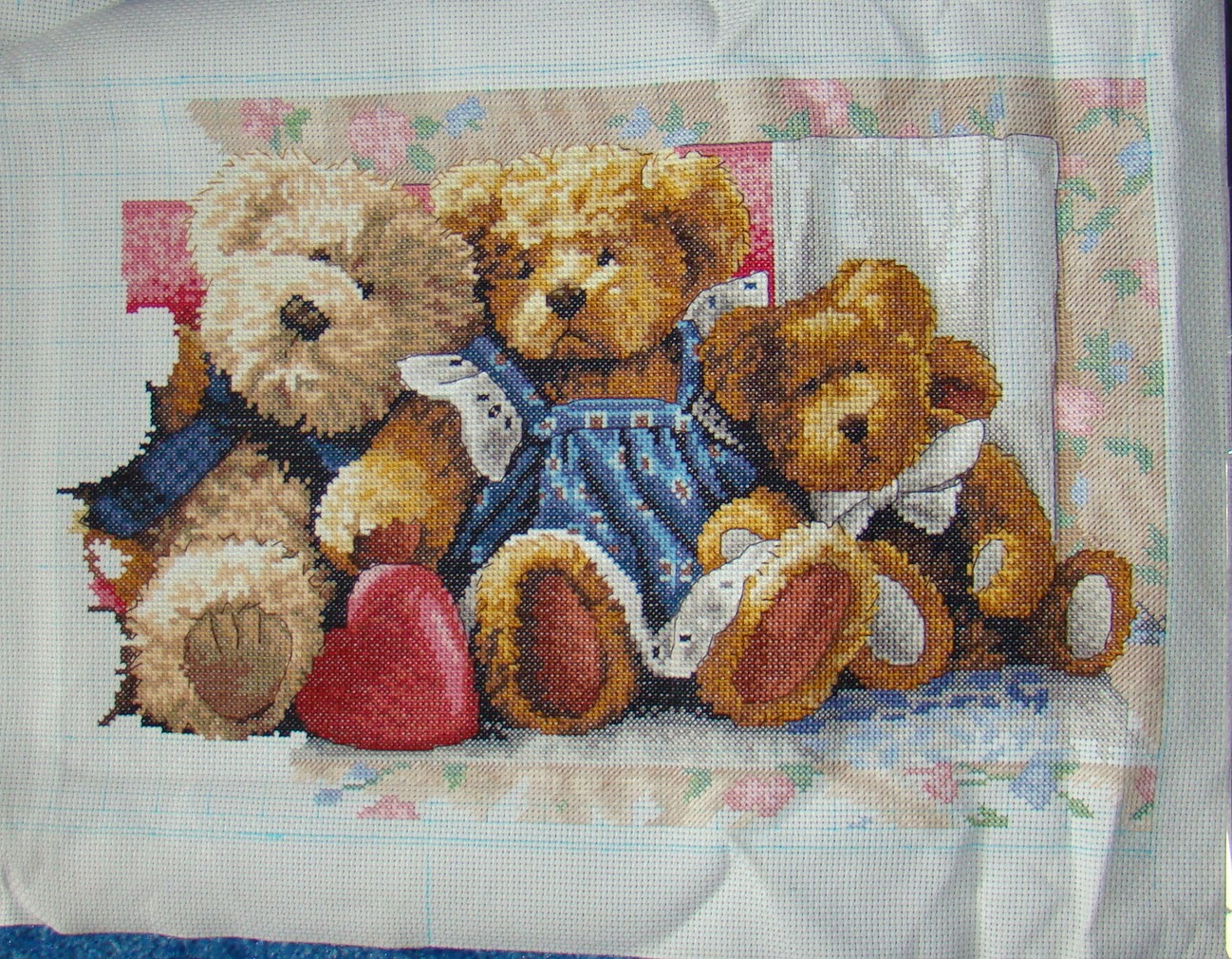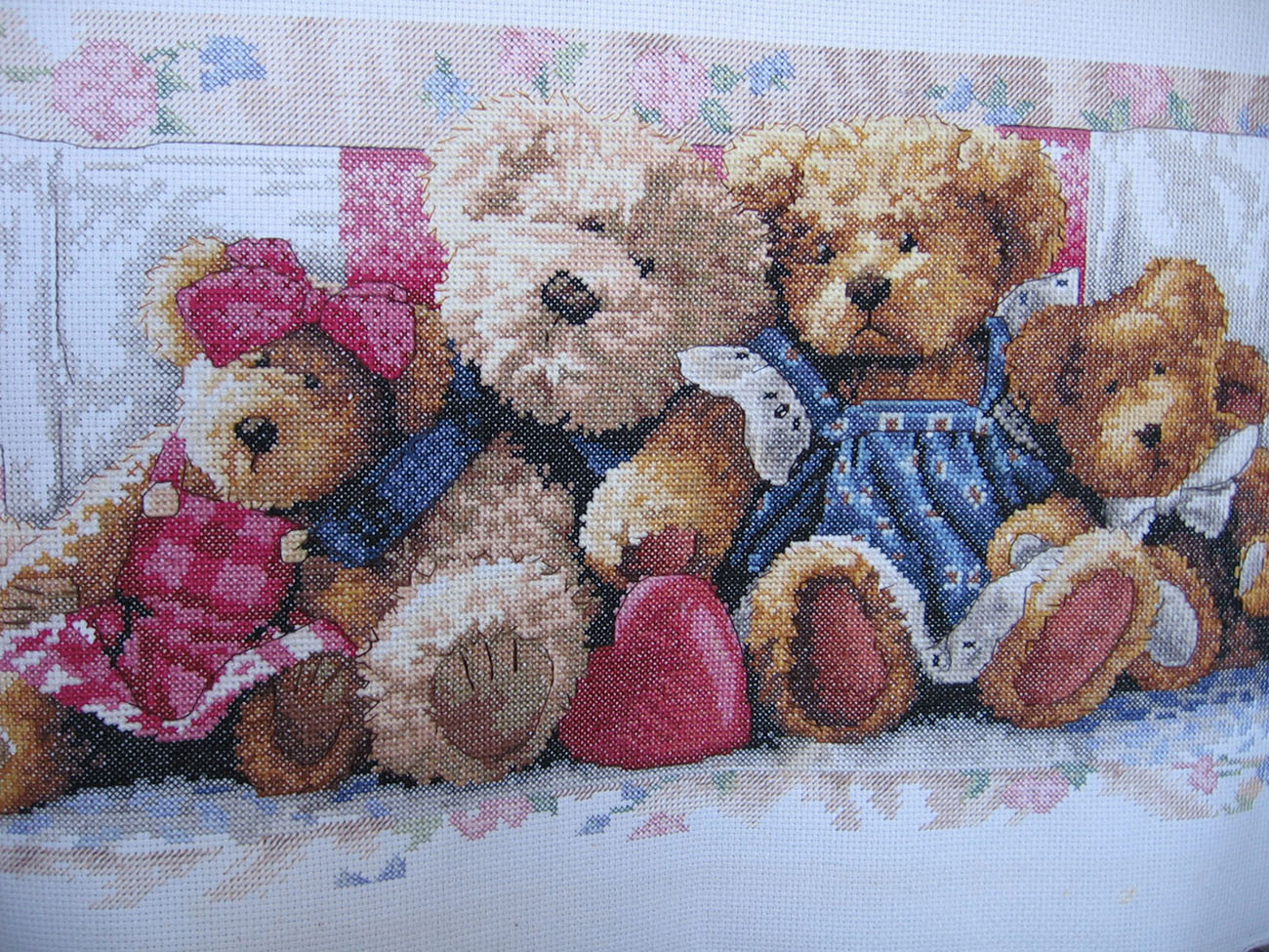 نوصي ببدء عملية التطريز من الصف السفلي الأيسر ، دون ترك أي مساحة خالية.