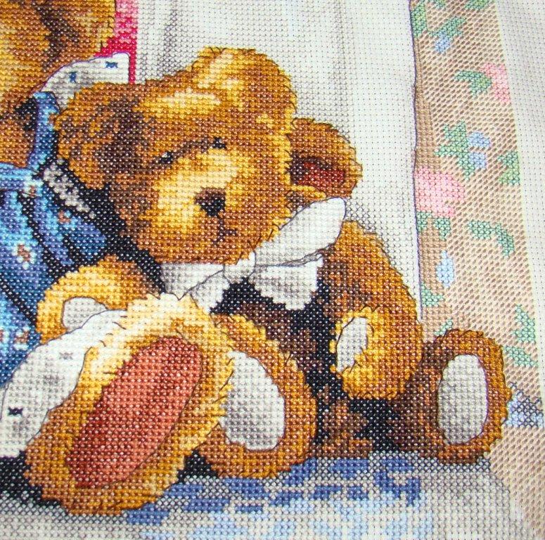 عندما ينتهي الخيط أو تحتاج إلى تغيير اللون - أحضر الخيط إلى الجانب الخطأ ، وقطعه وآمنه باستخدام عقدة.بعد ذلك ، خيط المواد الجديدة من خلال العيينة وخياطة.