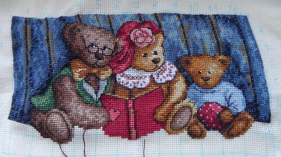 بعد تطبيق النموذج مباشرة ، يقوم السيد بخيوط الإبرة في عين الإبرة ويضع النسيج في الطوق. في المستقبل ، تحتاج إلى اختراق قماش الرسم على نفس المسافة باستخدام ظلال محددة من سلاسل العمليات.