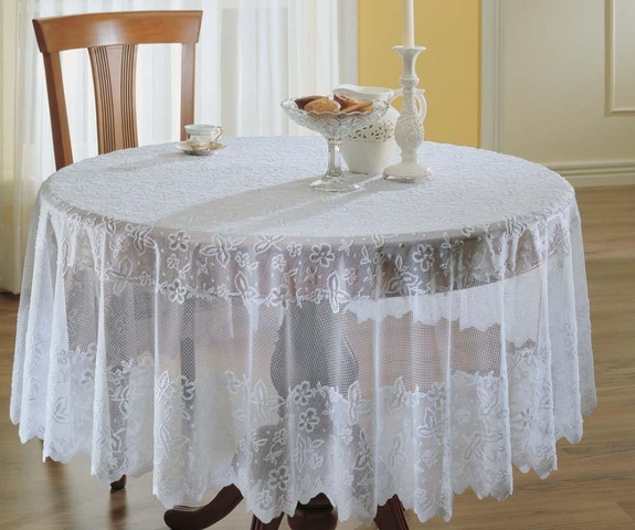 يبدو سطح الطاولة البيضاوي أفضل تحت غطاء مفرش بيضاوي نسبي.