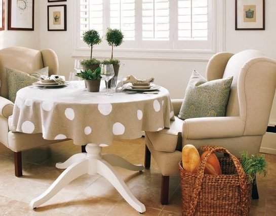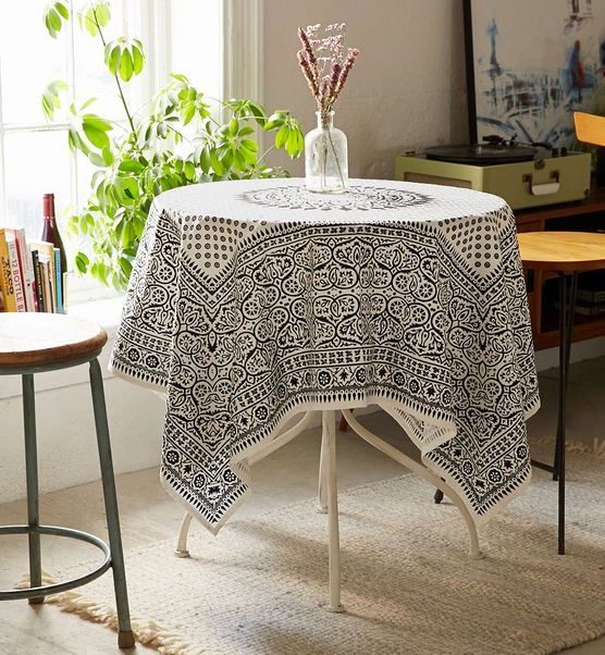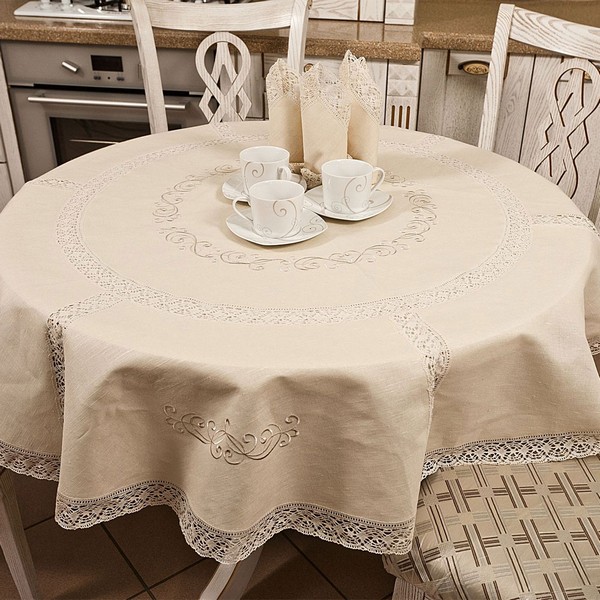 هناك أيضًا العديد من الخيارات مع طاولة مستديرة: مفرش طاولة مستدير أو مربع.