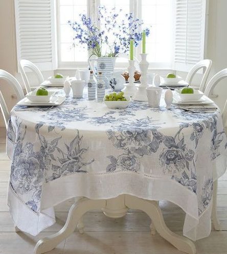 سيكون مفرش المائدة على طراز بروفانس بألوان مهدئة مناسبًا لمطبخ على طراز بروفنسال.