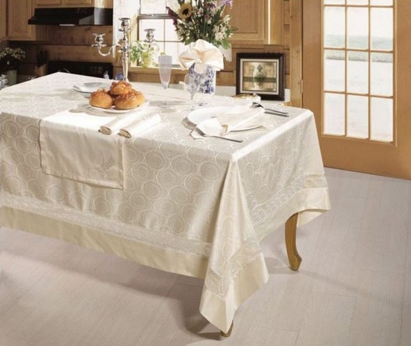 عند اختيار لون ونمط القماش لمفرش المائدة ، يجب الانتباه إلى الغرض منه.