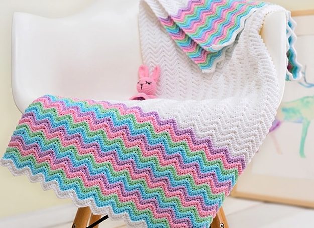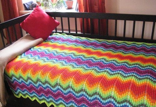 سوف تكون بطانية ناعمة دافئة هدية رائعة لطفل حديث الولادة. يمكن للمبتدئين حتى التعامل معها. تجربة مع لوحة الألوان للمنتج. حاول أن تأخذ كل ظلال قوس قزح وصنع أغطية فراش عليها.