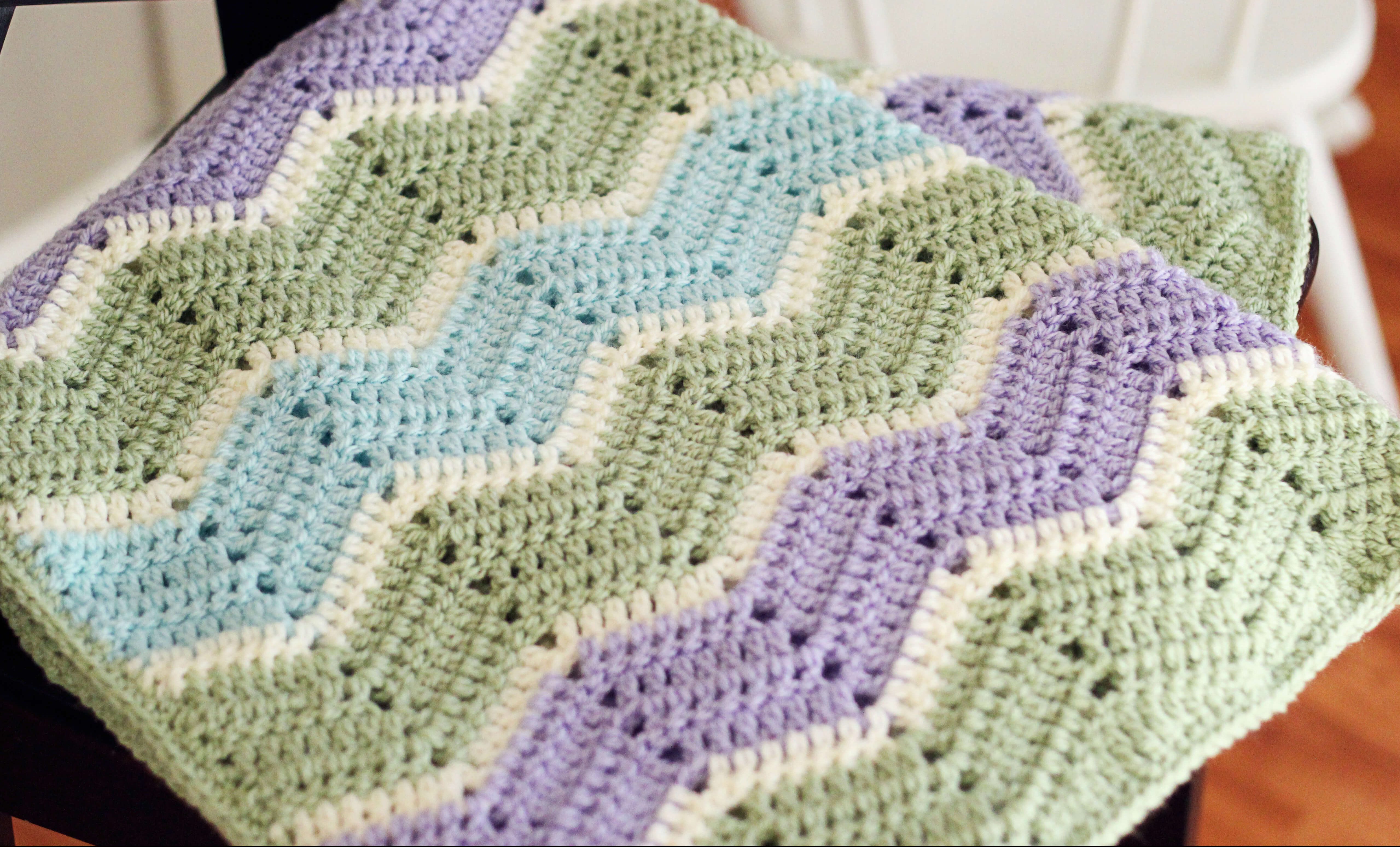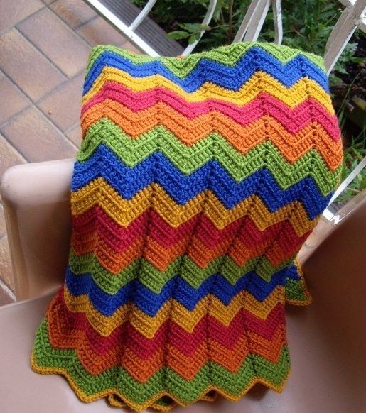 الكروشيه متعرج بطانية - الحياكة مخطط