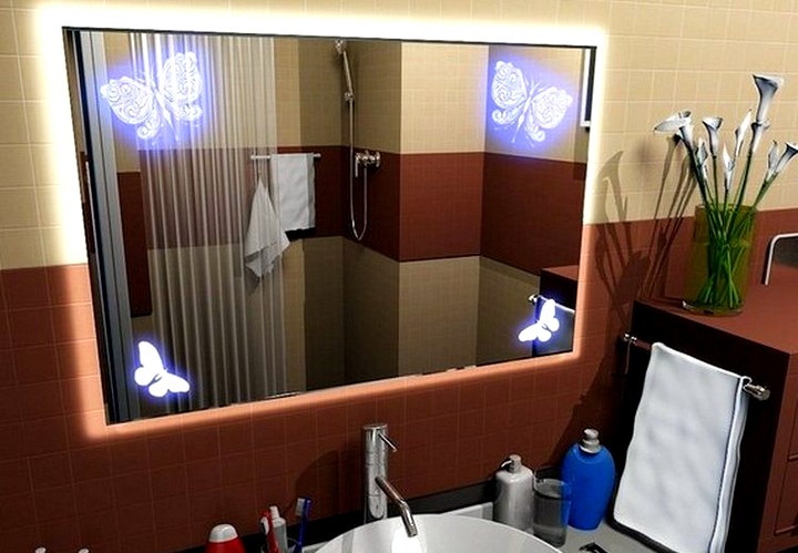 في معظم الحالات ، تتم إضاءة المرآة في الحمام حصريًا لأغراض الديكور.