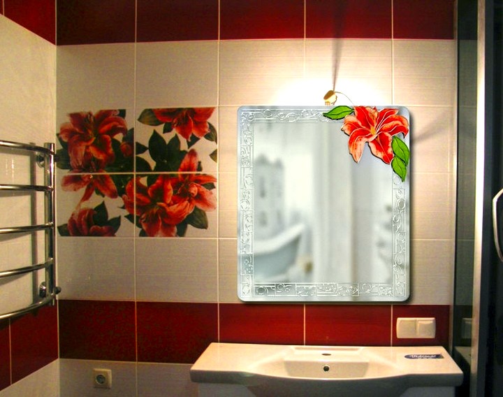من الأفضل اختيار شكل المرآة ، نظرًا لوجود أشكال وخطوط هندسية للحمام.