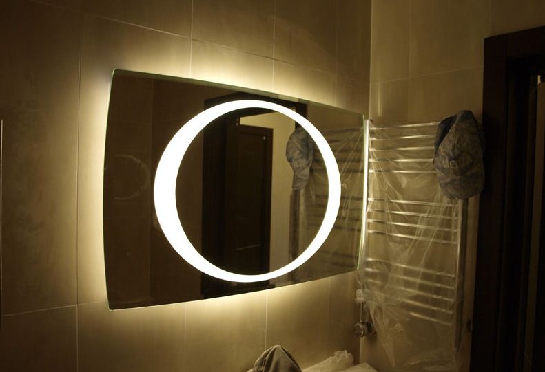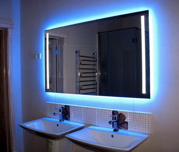 يمكن صنع الإضاءة الخلفية بطرق مختلفة ، على سبيل المثال على حافة لوحة المرآة في شكل إطار.