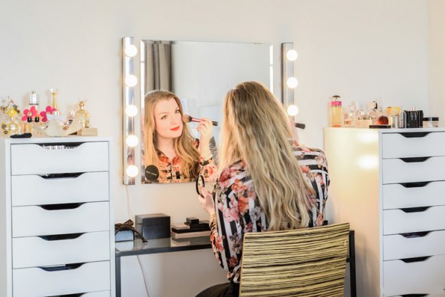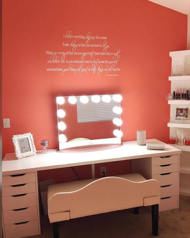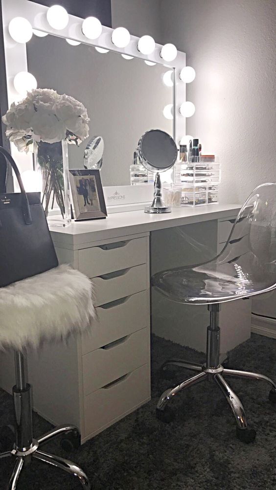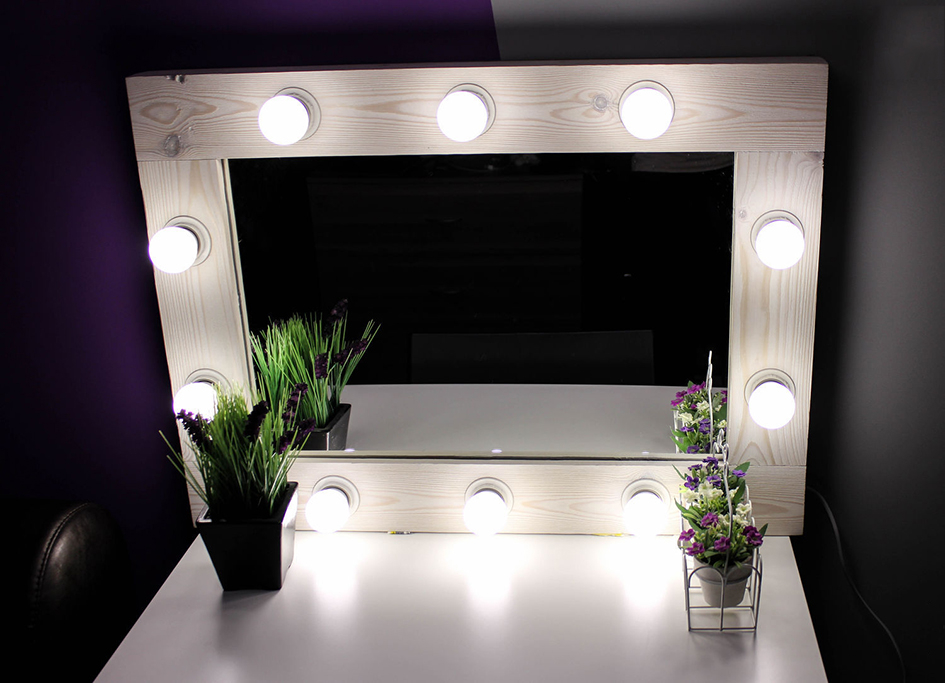 يساعد عدد كبير من المصابيح حول مرآة المكياج على رؤية المرء بوضوح أكبر قدر ممكن وإنشاء المكياج المثالي.