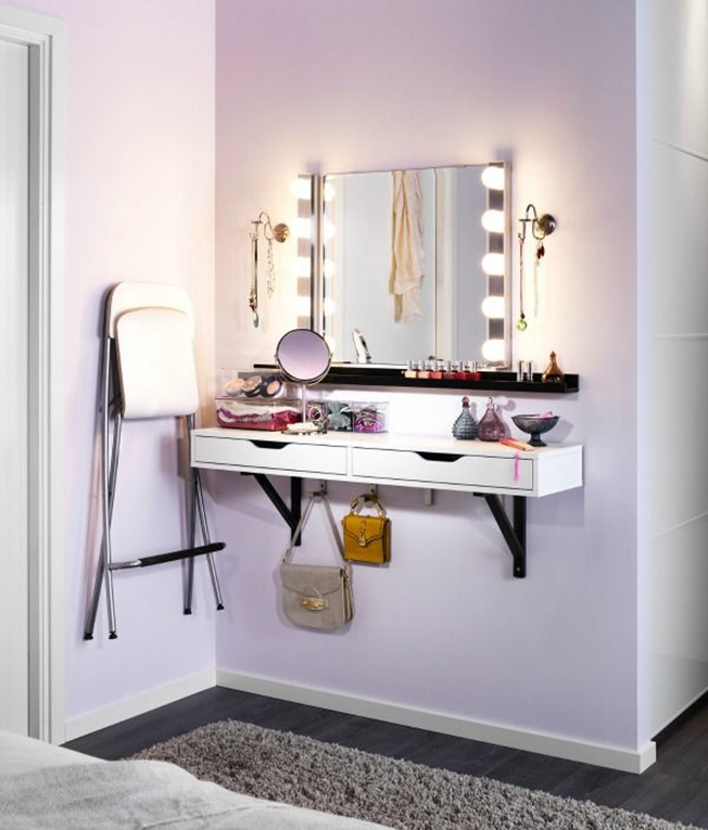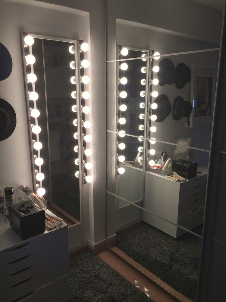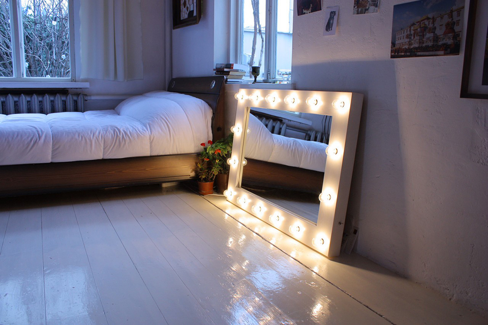 فكرة مثيرة للاهتمام من تركيب وحدات منفصلة مع مصابيح بالقرب من المرآة