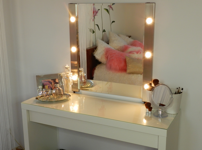مرآة جميلة في إطار مشرق لطاولة خلع الملابس