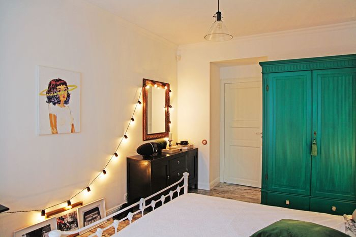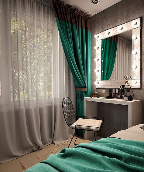 إعداد مغاير لمرآة المكياج في غرفة النوم المشرقة