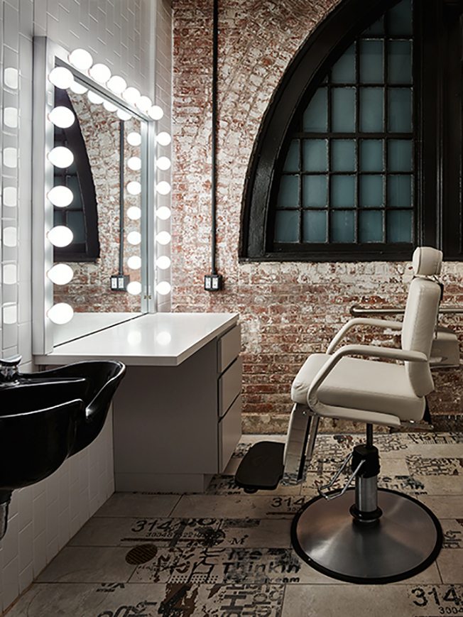 مرآة مكياج صغيرة في الرواق مع إضاءة إضافية