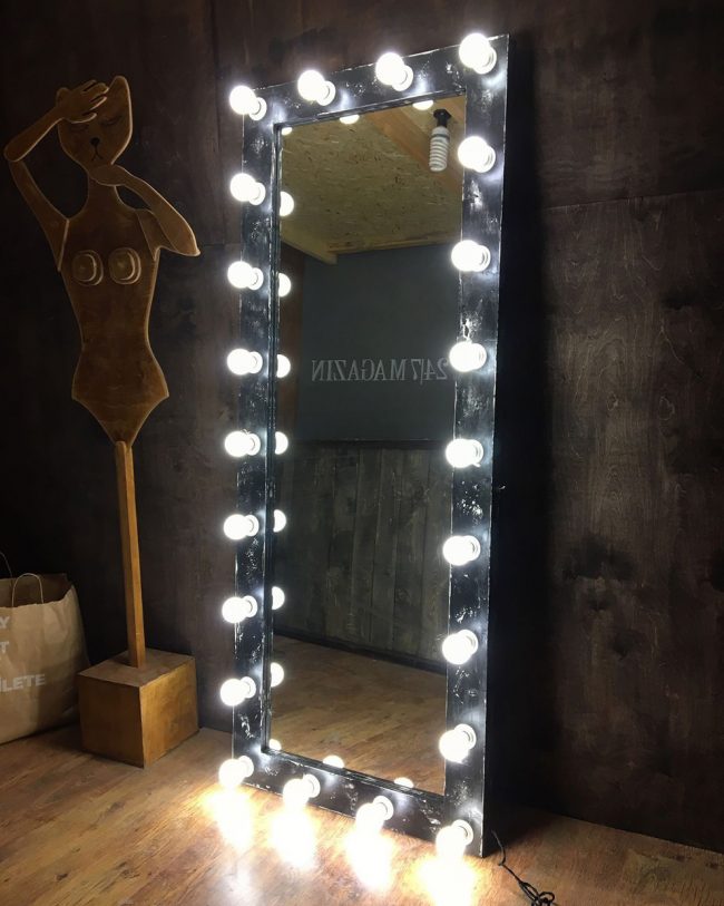 جميع ملامح قطعة قماش مرآة مع المصابيح تتكون في شكله ، والإطار. النظر في الخيار الذي هو أكثر ملاءمة للاستخدام في أنماط داخلية محددة.