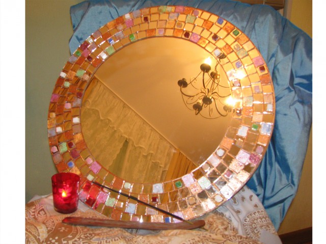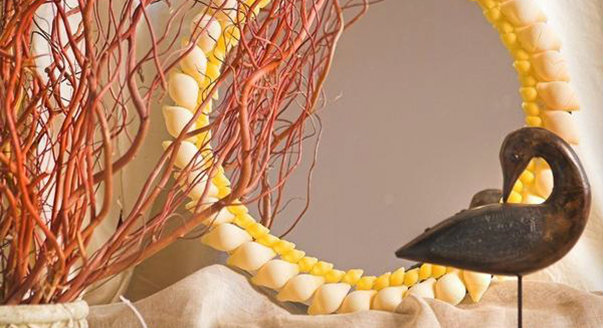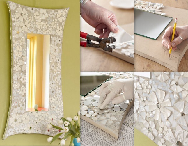 أو قم بتغيير مظهر المرآة أو المجوهرات المزخرفة أو الأصداف أو عصي الخيزران أو الأطباق المكسورة.