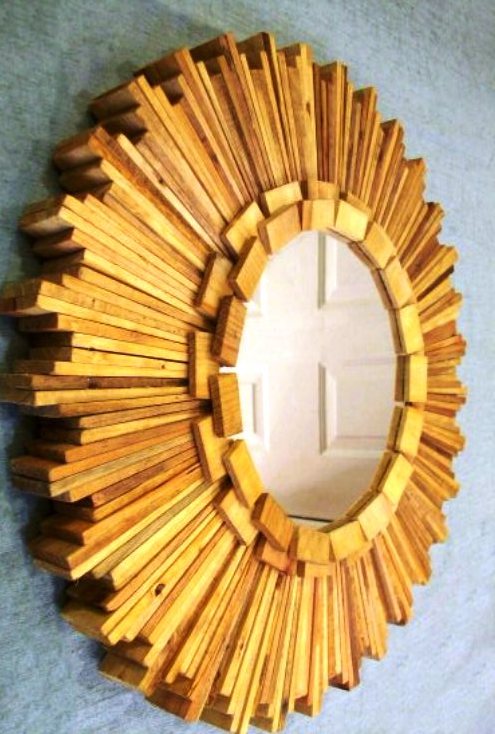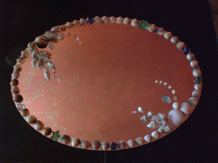 إذا الإطار في المرآة خشبي وفقد بريقه ، يمكنك ترقيته ، سبب الورنيش اللون المطلوب. أو قم بتغيير مظهر المرآة ، زينة المجوهرات ، قذائف ، عصي الخيزران أو الأطباق المكسورة. كل هذا يتوقف على خيال المالك.