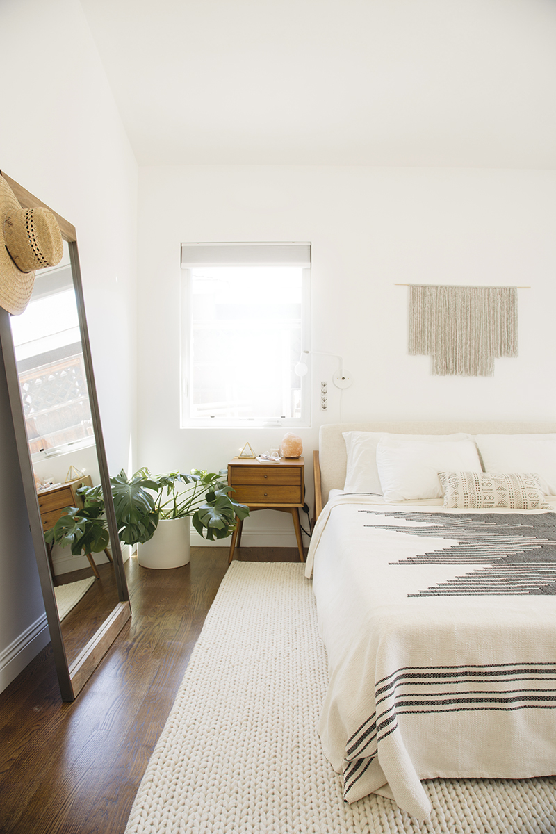 باستخدام مرآة لتزيين غرفة النوم ، قم بتوسيع الأبعاد بصريًا وأضف "الهواء" والضوء إلى الغرفة.