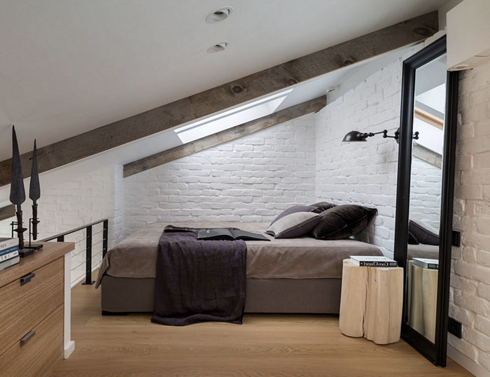 الديكور الجميل والمريح لمثل هذا المكان الشخصي للاسترخاء ، مثل غرفة النوم ، مع استخدام أثاث المكاتب وترتيب المرآة في فنغ شوي هو عملي ، مثير للإعجاب ، وبالطبع مناسب للمالكي.