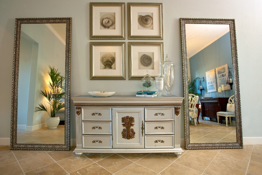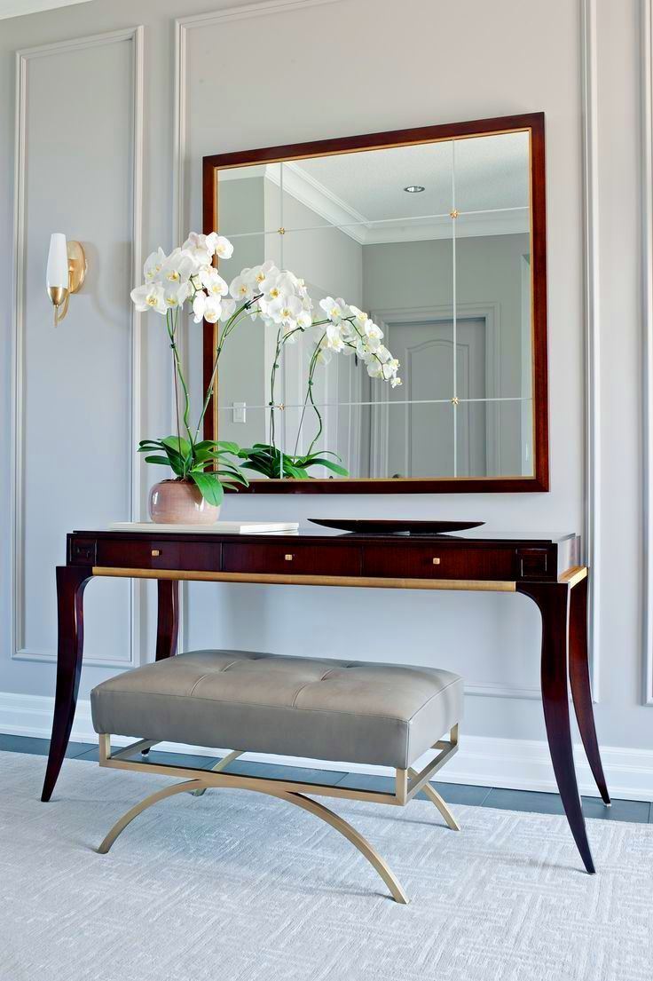 يمكن للمرآة الكبيرة أن توسع بصريًا مساحة المدخل الصغير ، خاصةً إذا كان لديها تخطيط ممر ضيق.