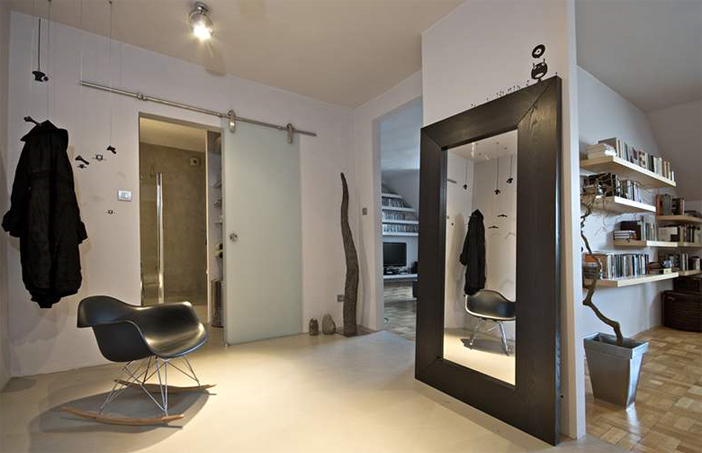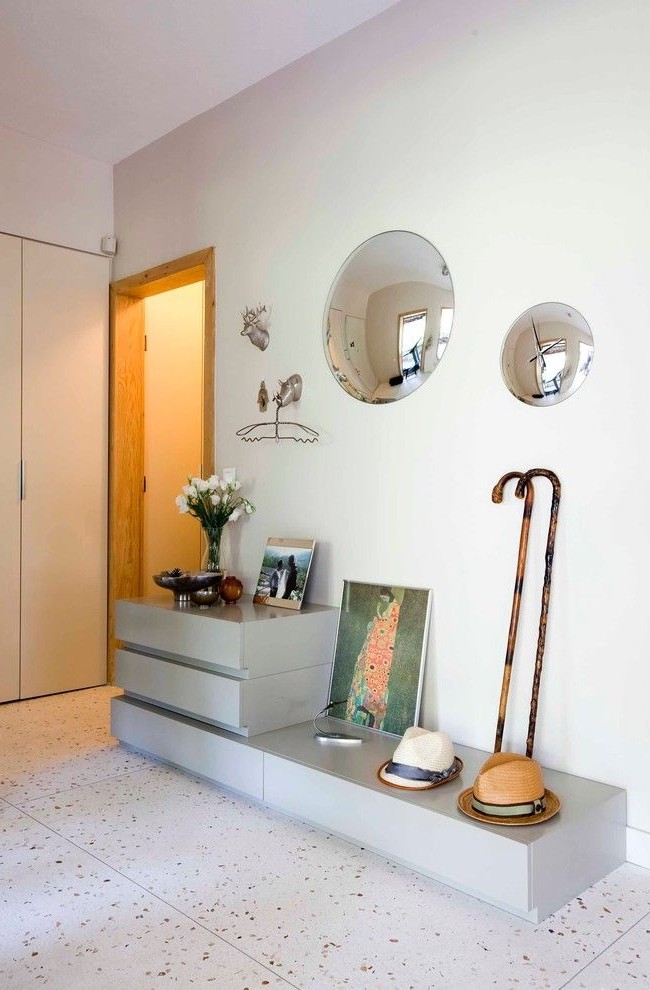 - Bسيكون أمرا رائعا إذا وضعت خزانة مع مرآة في الرواق على نفس الخط مع المدخل ؛